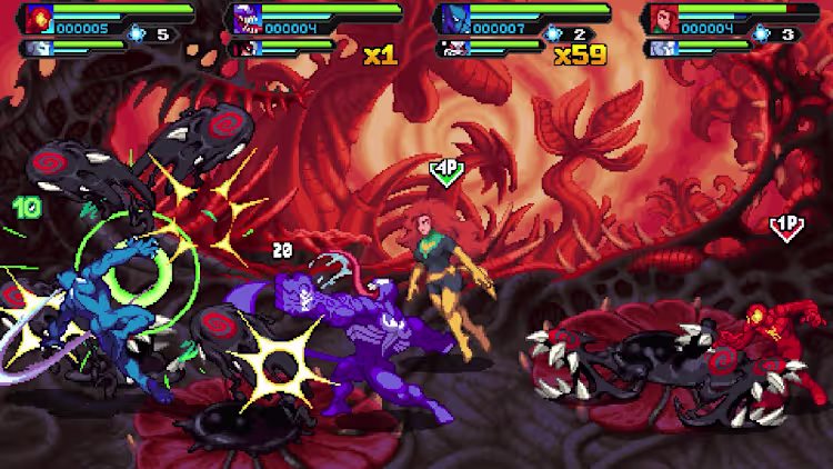 Tout d’abord, il est important de situer le contexte narratif. Bien que le scénario ne soit jamais le point central d’un beat’em up, Tribute Games a tout de même soigné sa copie. Concrètement, l’histoire s’inspire librement de l’arc Annihilation. De ce fait, le tyran Annihilus a ouvert un portail depuis la Zone Négative, déversant sa vague d’insectes destructeurs sur notre réalité. Même si l’intrigue tient sur un ticket de métro, elle offre néanmoins une excuse parfaite pour traverser des décors variés et spectaculaires.