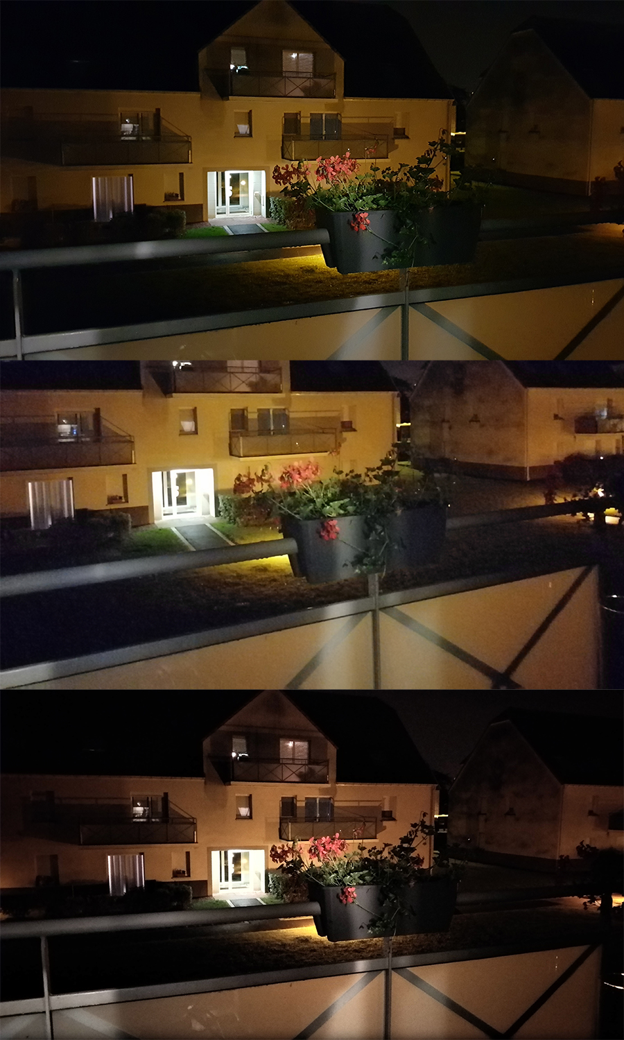 De haut en bas(photo prise sans flash dans le noir) : S8 – Honor 9 – Asus Zenfone Zoom S
